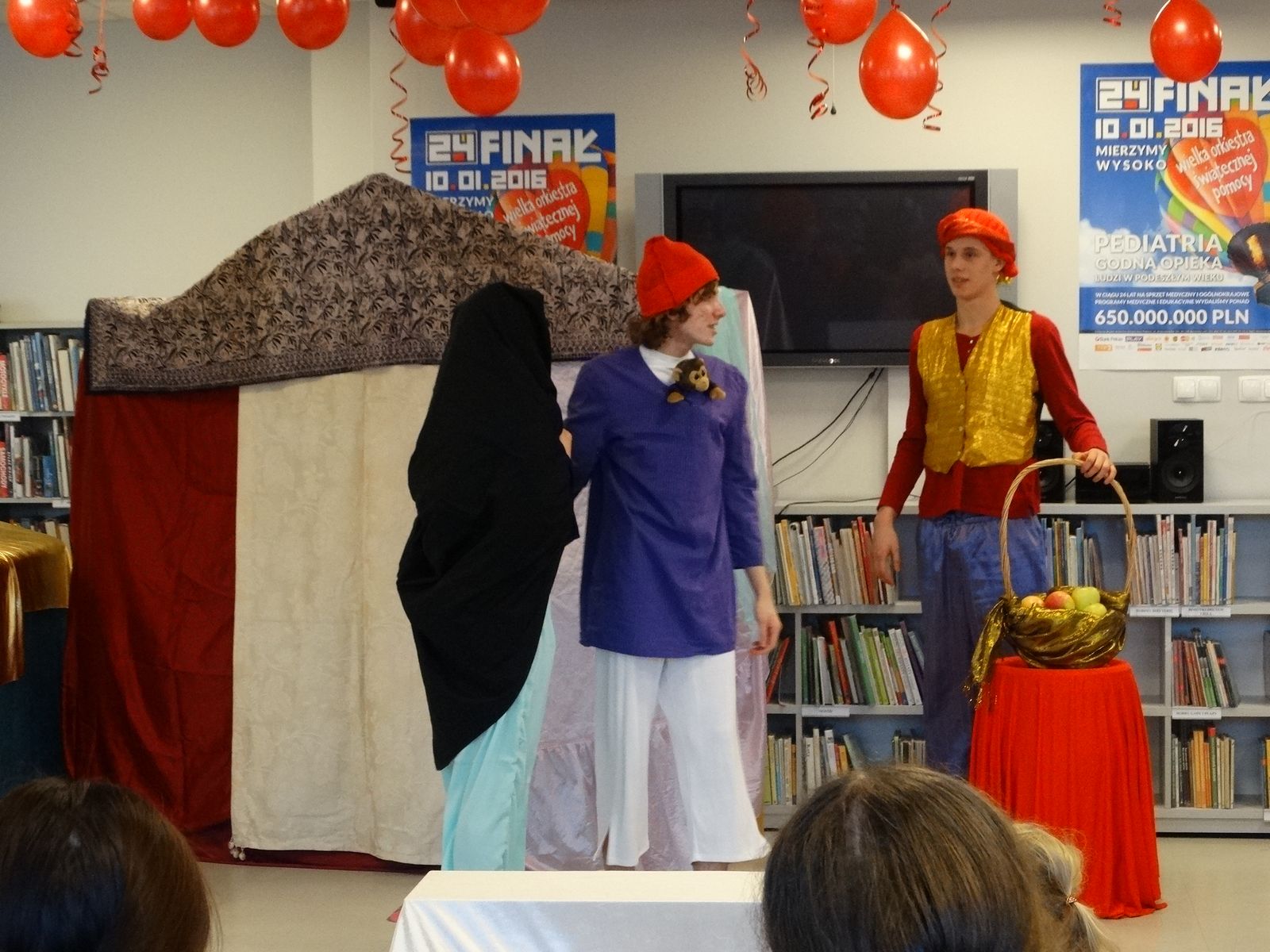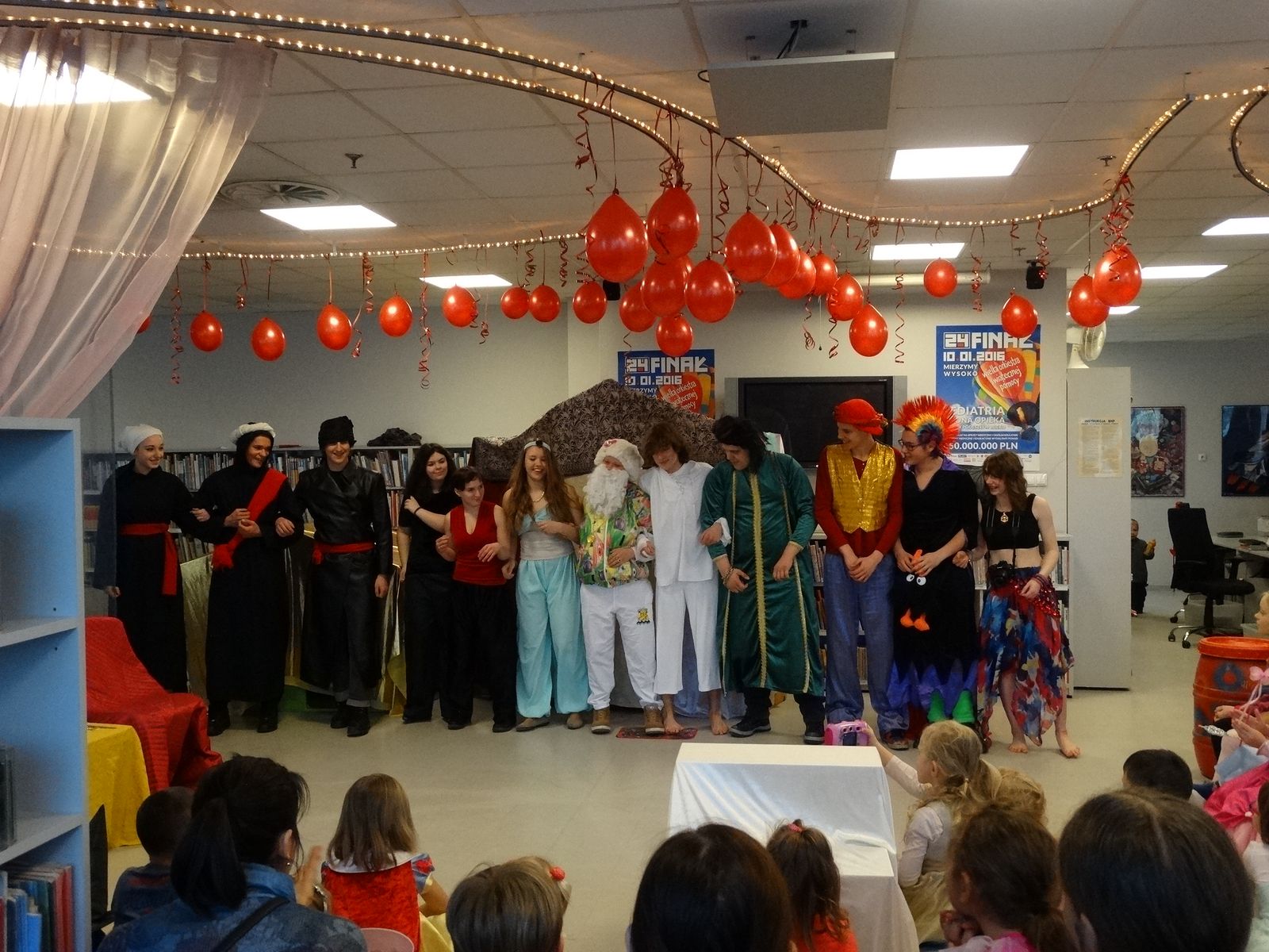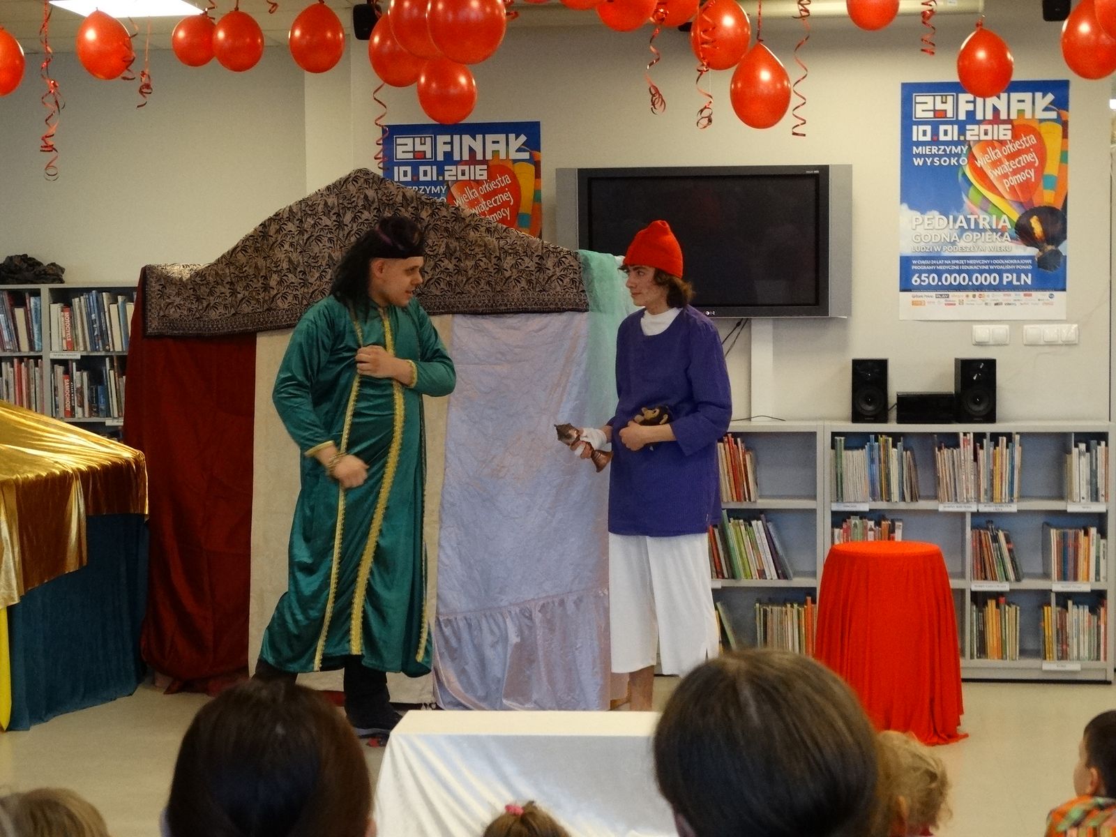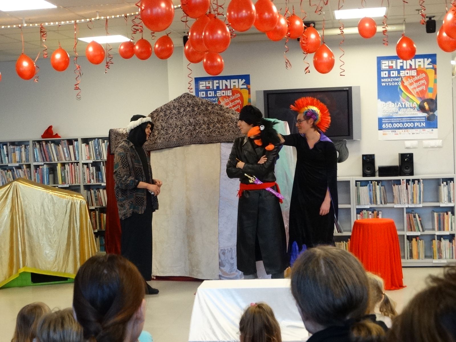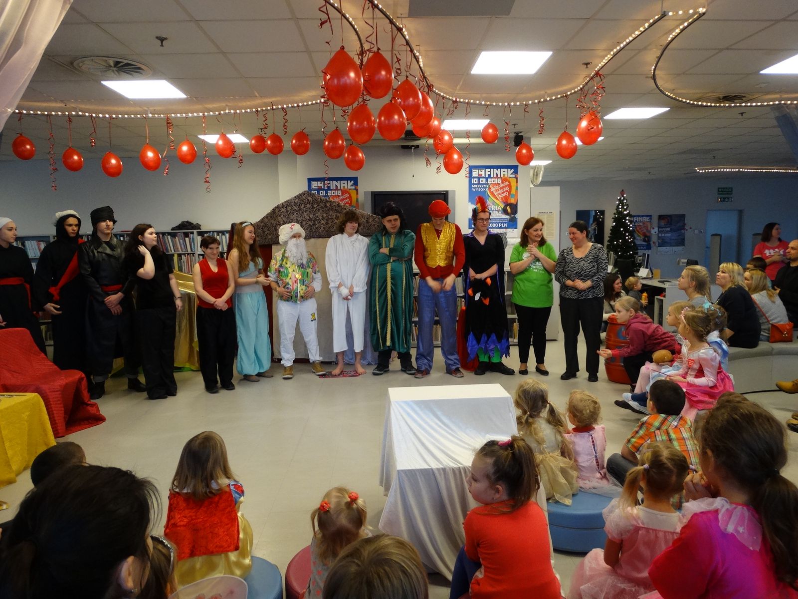 Już po raz siódmy czytelnicy biblioteki Abecadło wzięli udział w finale Wielkiej Orkiestry Świątecznej Pomocy. Dzieci i rodzice obejrzeli przedstawienie teatralne „Aladyn” przygotowane przez uczniów Szkolnego Koła Teatralnego Zespołu Szkół Gastronomiczno-Spożywczych w Olsztynie pod opieką Ewy Piórkowskiej. Odbył się także rodzinny konkurs na najdłuższy serduszkowy łańcuch, który ozdobił orkiestrową choinkę. Jednak najgorętszym punktem programu była kiermasz Abecadłowych Dzieł Sztuki i tradycyjny serduszkowy bal. Klub Integracji Społecznej MZPiTU w Olsztynie przygotował LOTERIĘ FANTOWĄ, którą dzięki uprzejmości CH Aura mogliśmy zorganizować na terenie galerii. Wszystkim uczestnikom Balu dziękujemy za wspólne granie i ich hojne serduszka.