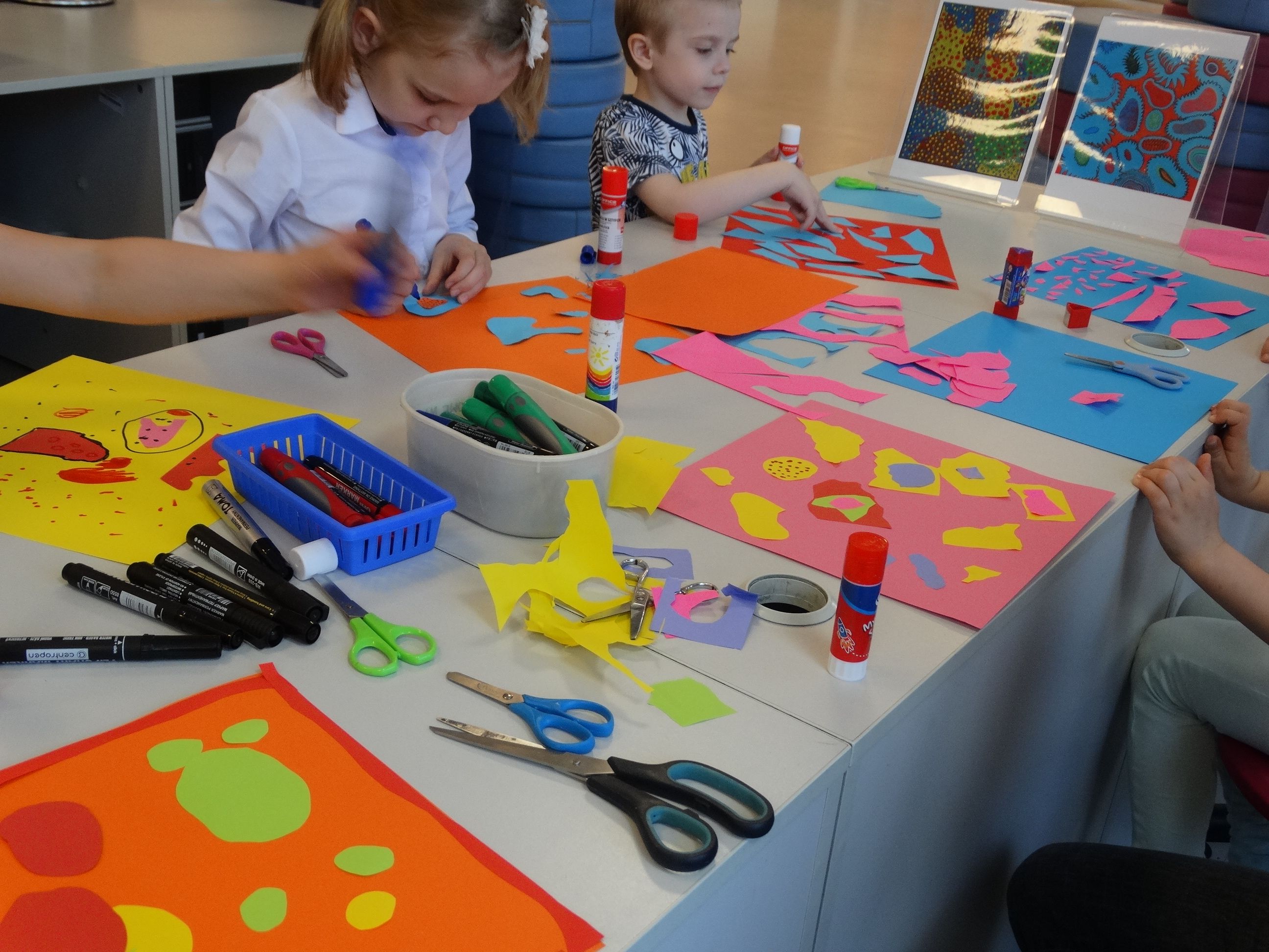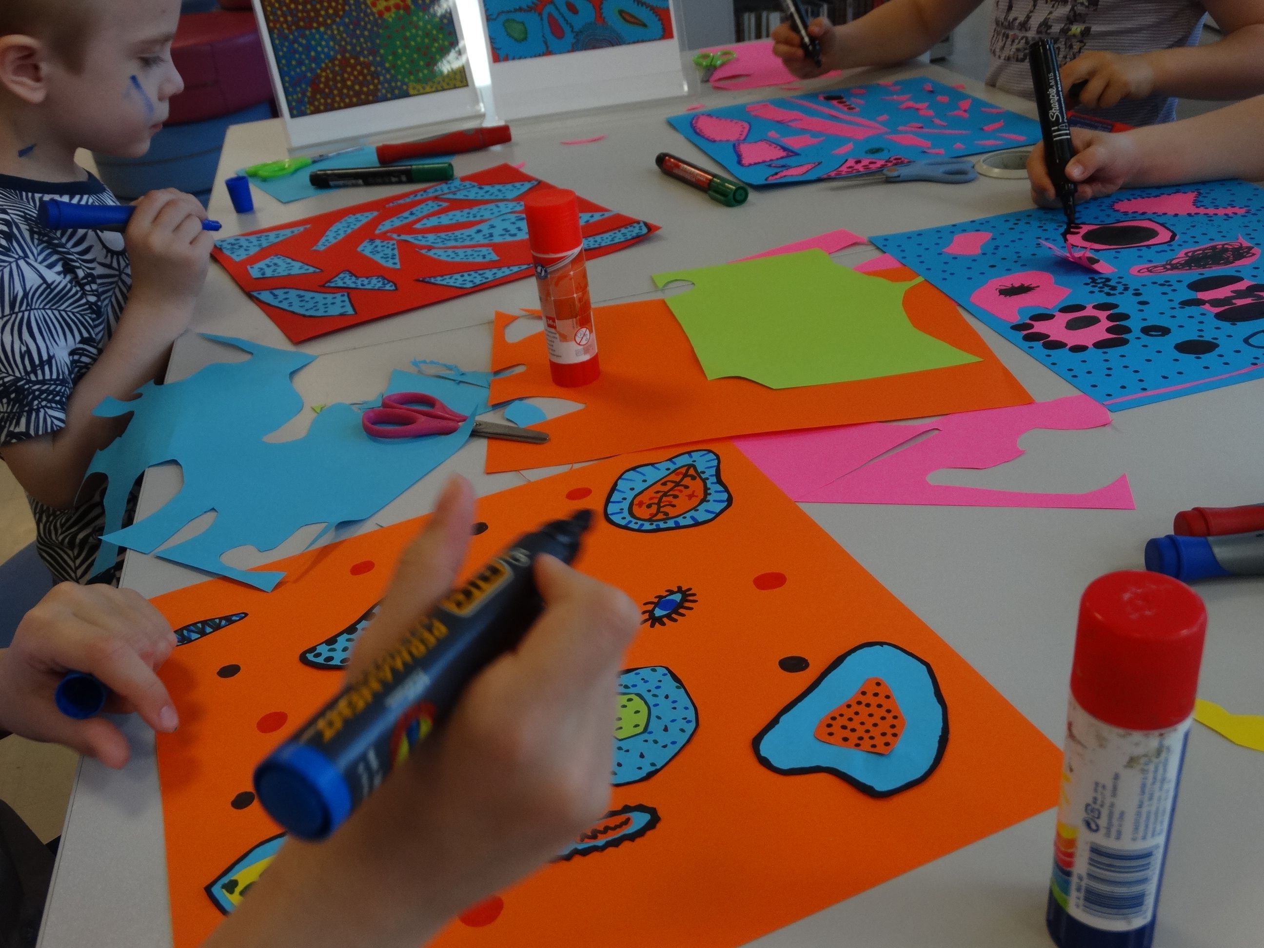 Przez cały maj w czasie spotkań „Sztuczki ze Sztuką” realizowaliśmy cykl „Wielcy malarze”. Uczestnicy warsztatów poznali twórczość Joanna Miró, Paula Klee, Yayoi Kusama i Pablo Picasso. Dzieci zainspirowane obrazami tych artystów tworzyły własne dzieła.