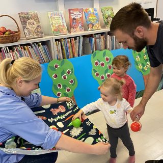 Na kwietniowych spotkaniach w Bajkotece Malucha dzieci poznały pojęcia duży-mały, nauczyły się nazywać kształty i...